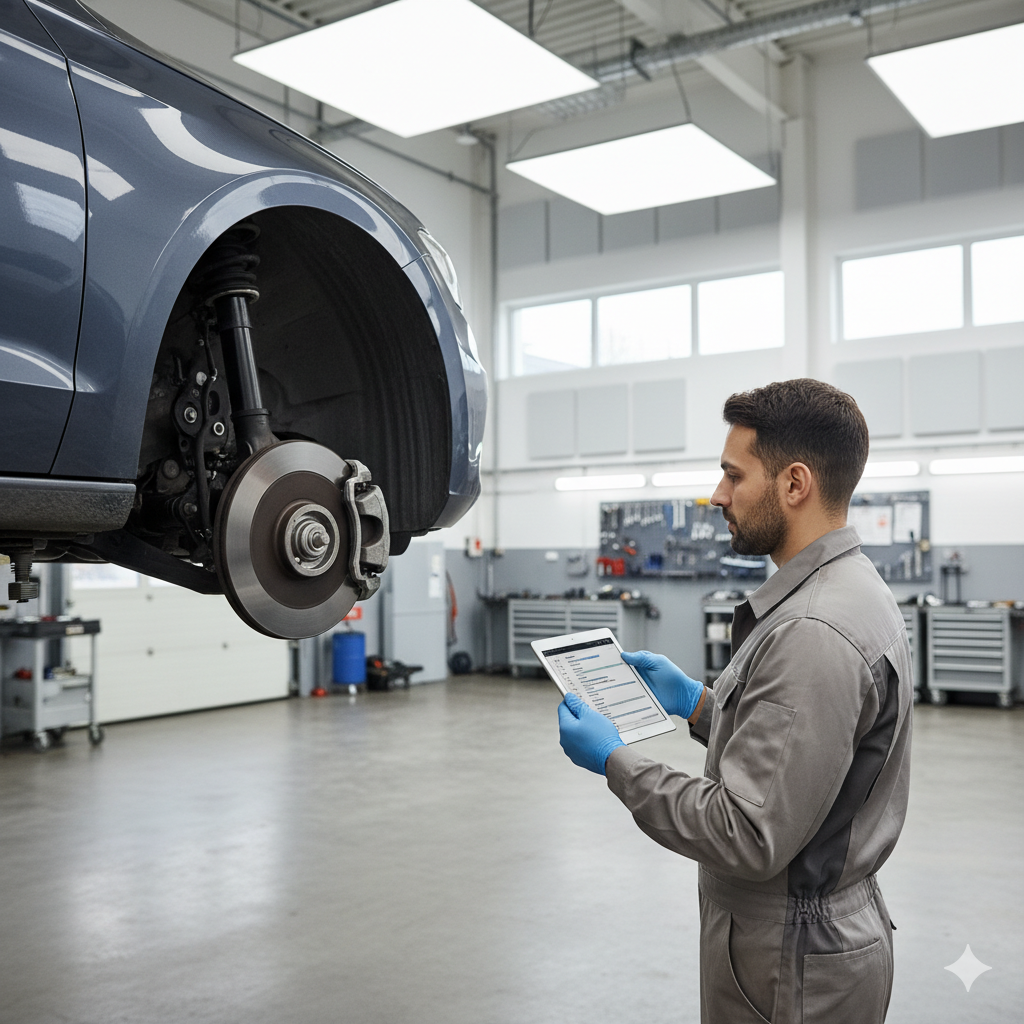 Hamulce – tarcze, klocki, przewody, wydajność, test płynu hamulcowego.